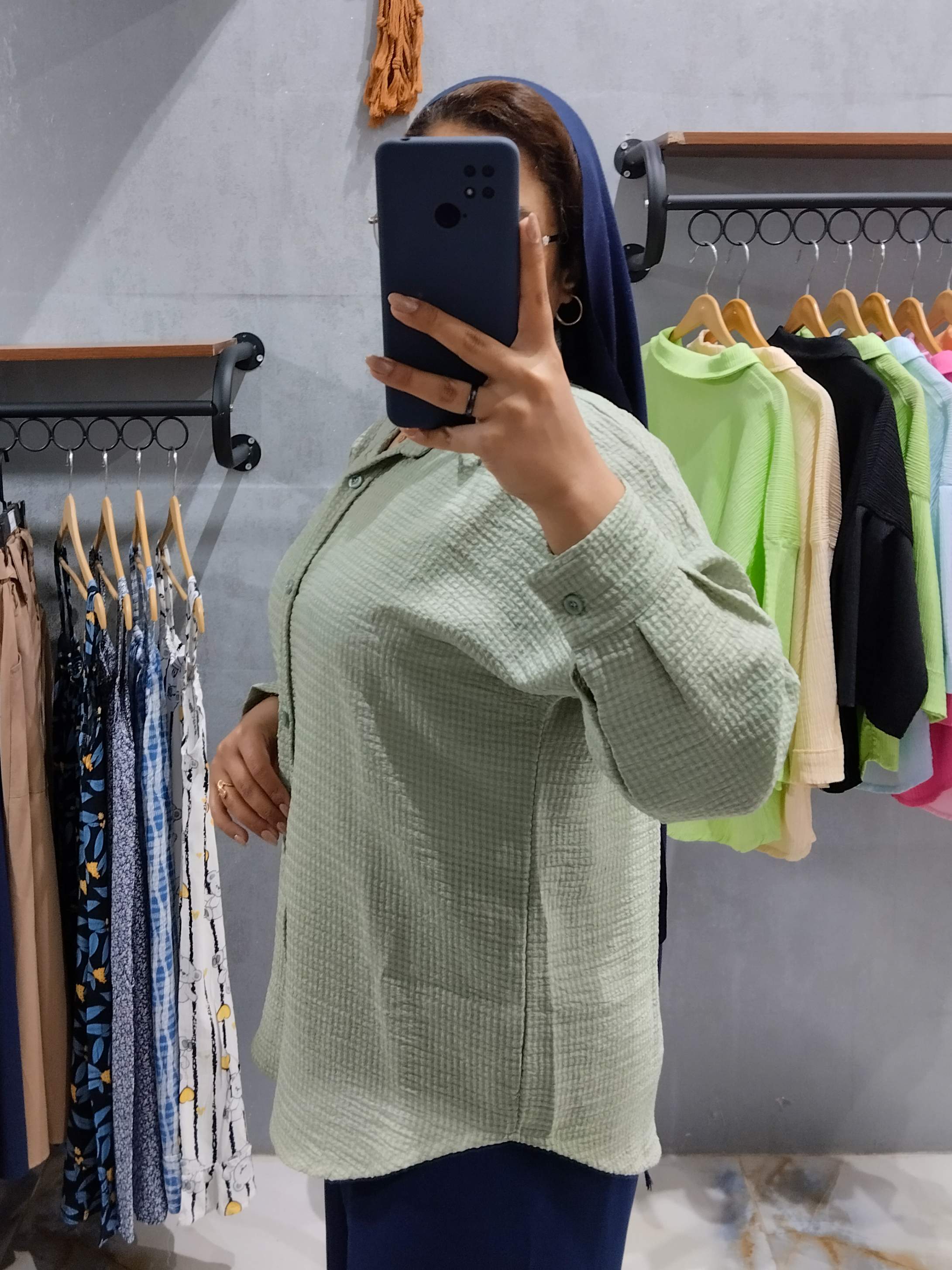 شومیز حصیری زیبا یه کار شیک و خنک مناسب تابستون بخاطر بافت پارچه چرخش هوا توی شومیز عالیه فری سایزه و تا سایز ۴۴ اندازه میشه عرض سینه :61 (دور سینه 122) بلندی آستین: 67 بلندی شومیز: 71 دور بازو: 42